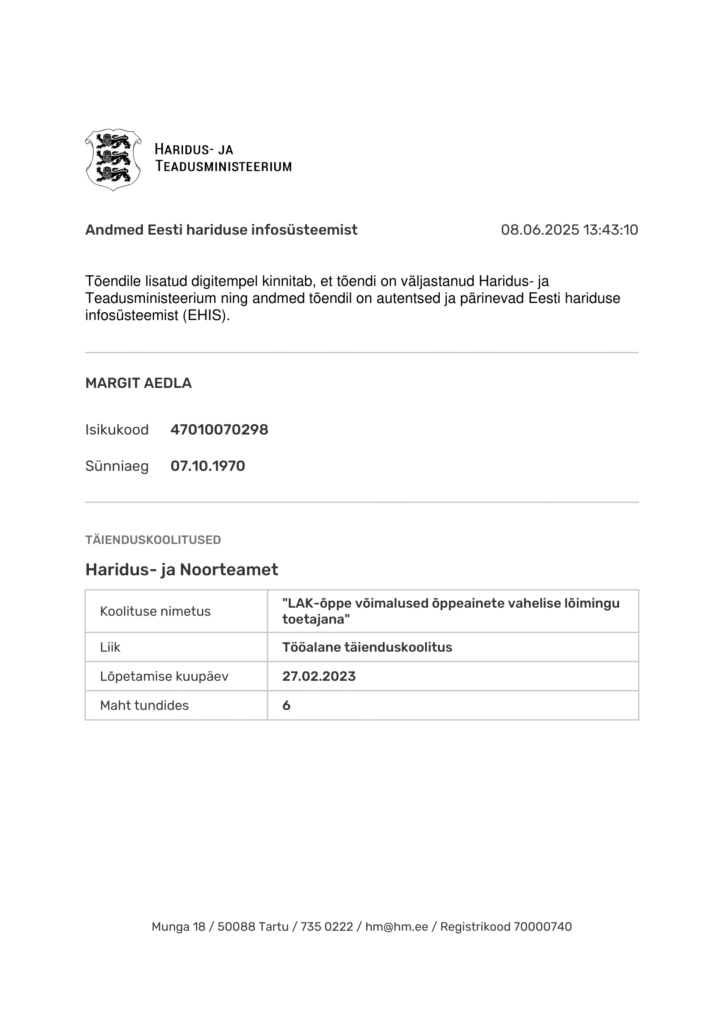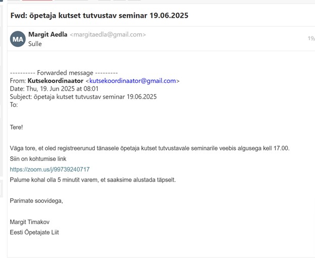 19.06. 2025 osalesin veebikoolitusel “Õpetaja kutset tutvustav seminar”.