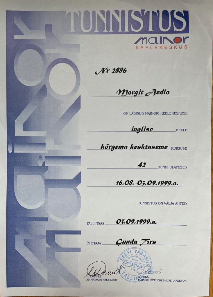 Tõendus ühe võõrkeele taseme osas.